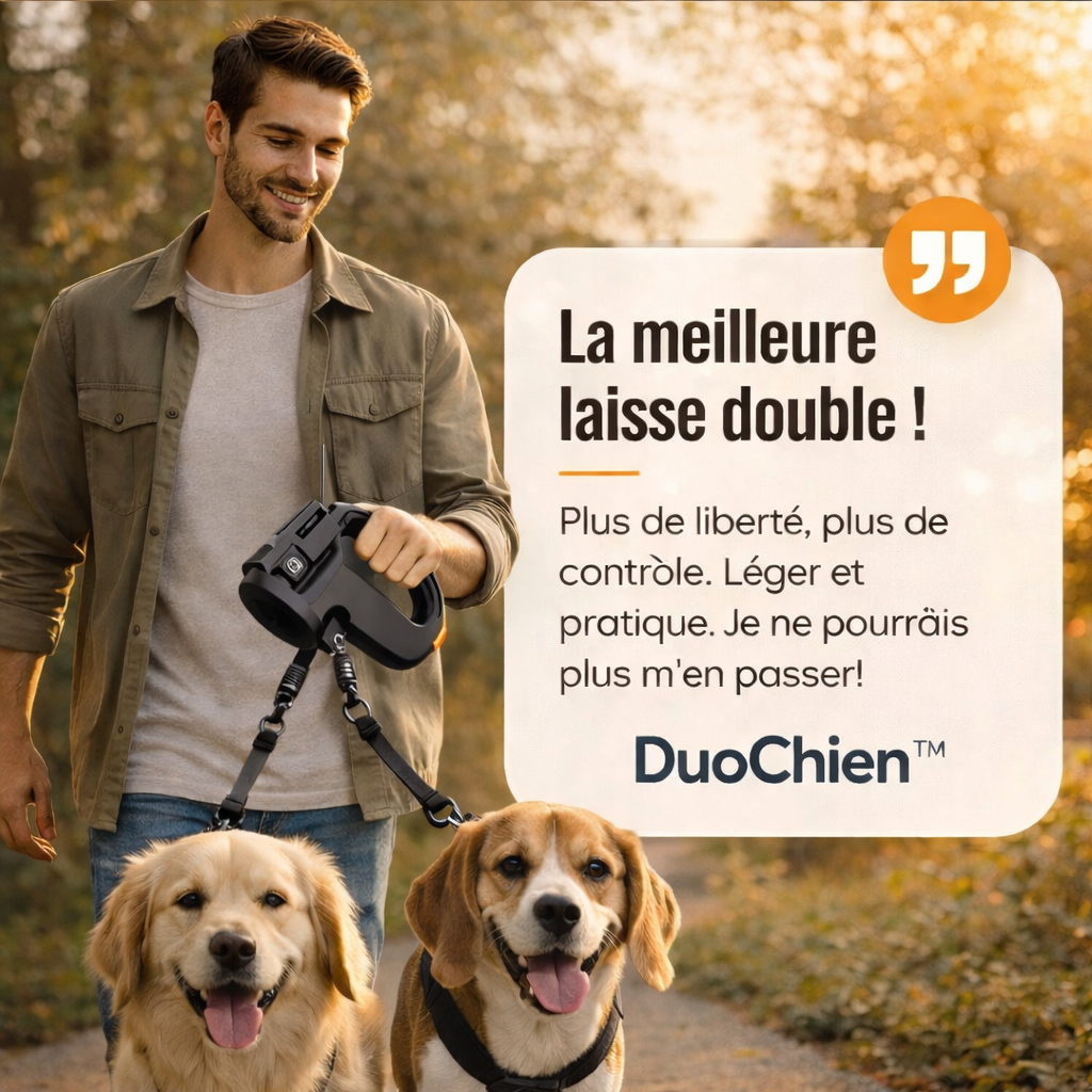 “Enfin une promenade sans laisses emmêlées. Un vrai soulagement au quotidien.”